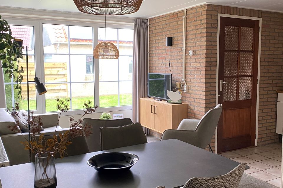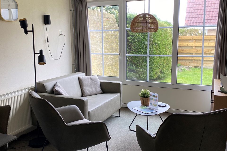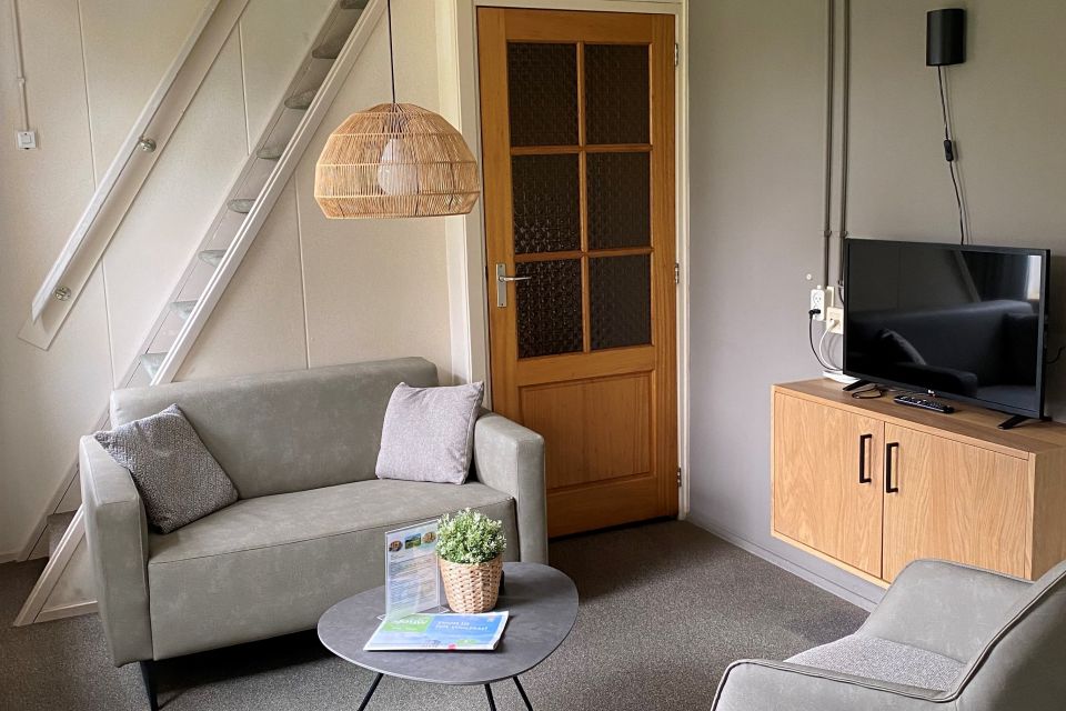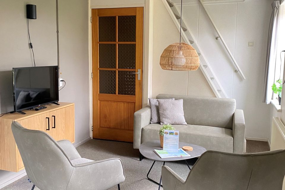 - Woonkamer met flatscreen, dvd-speler, radio, salontafel, bank en stoelen