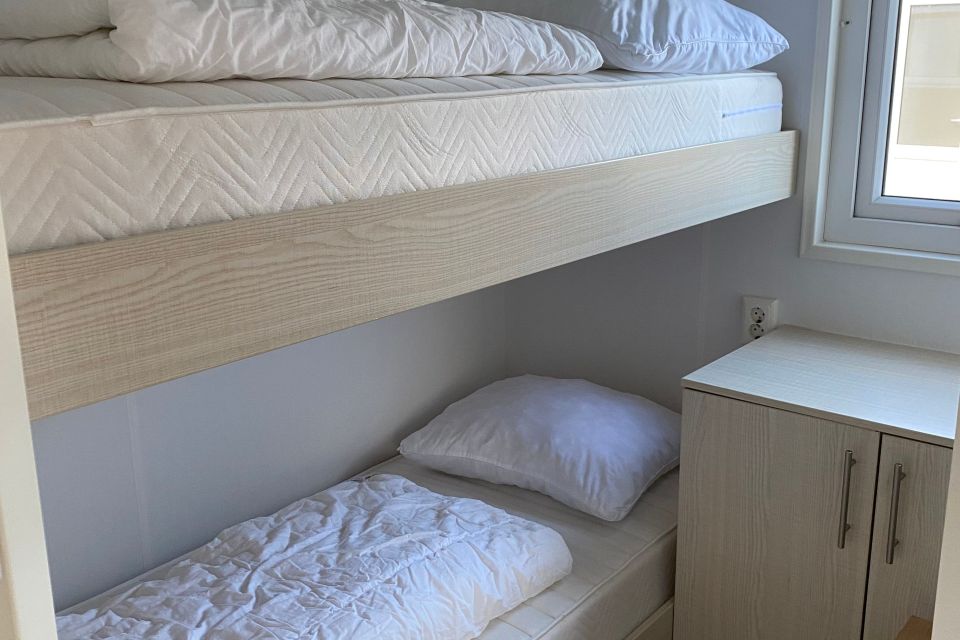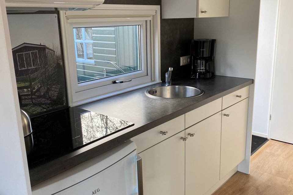 U heeft in het chalet een kamer/keuken, 2 slaapkamers, douche en toilet.